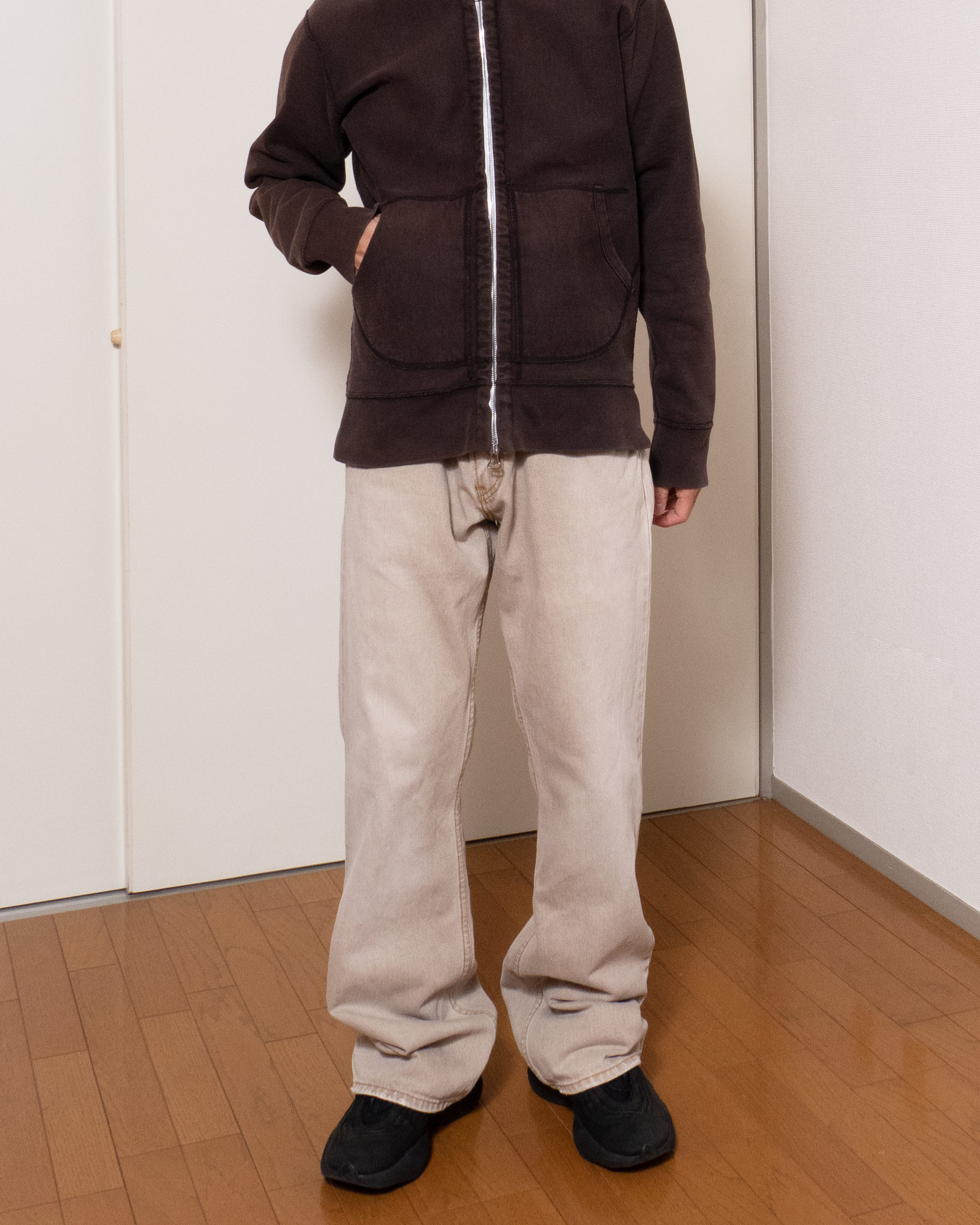 左お尻下に若干ヤケ、裾にダメージが御座います。