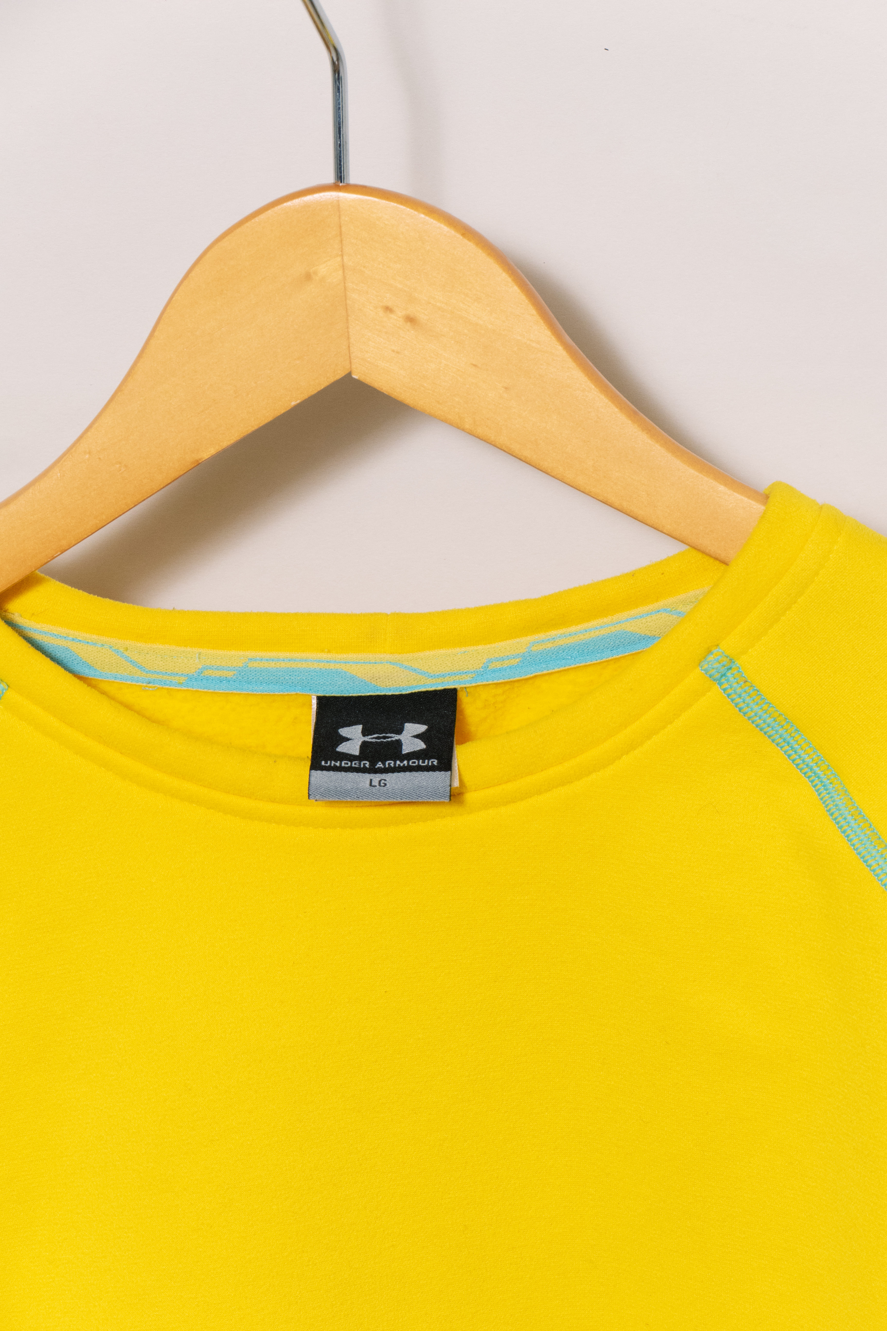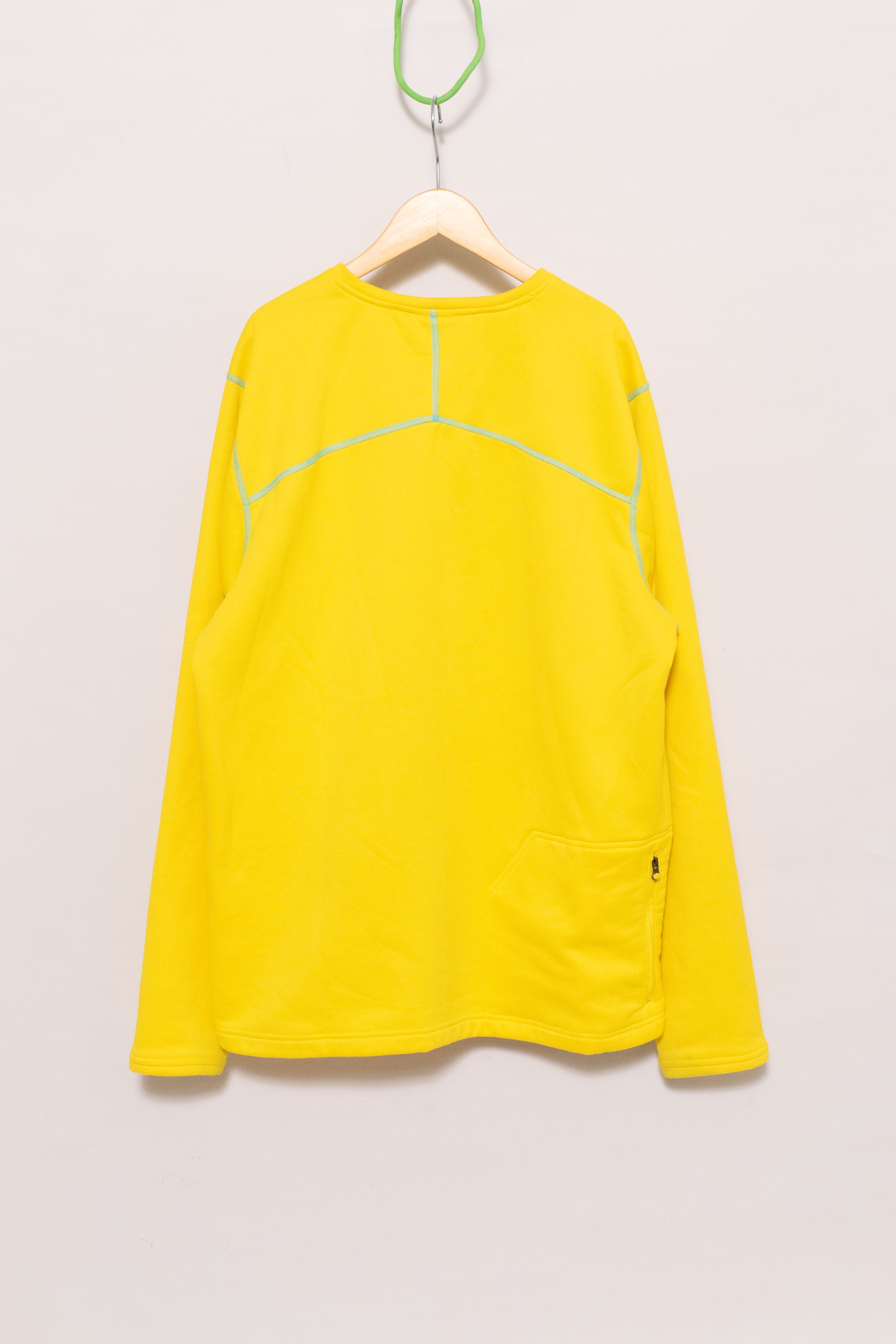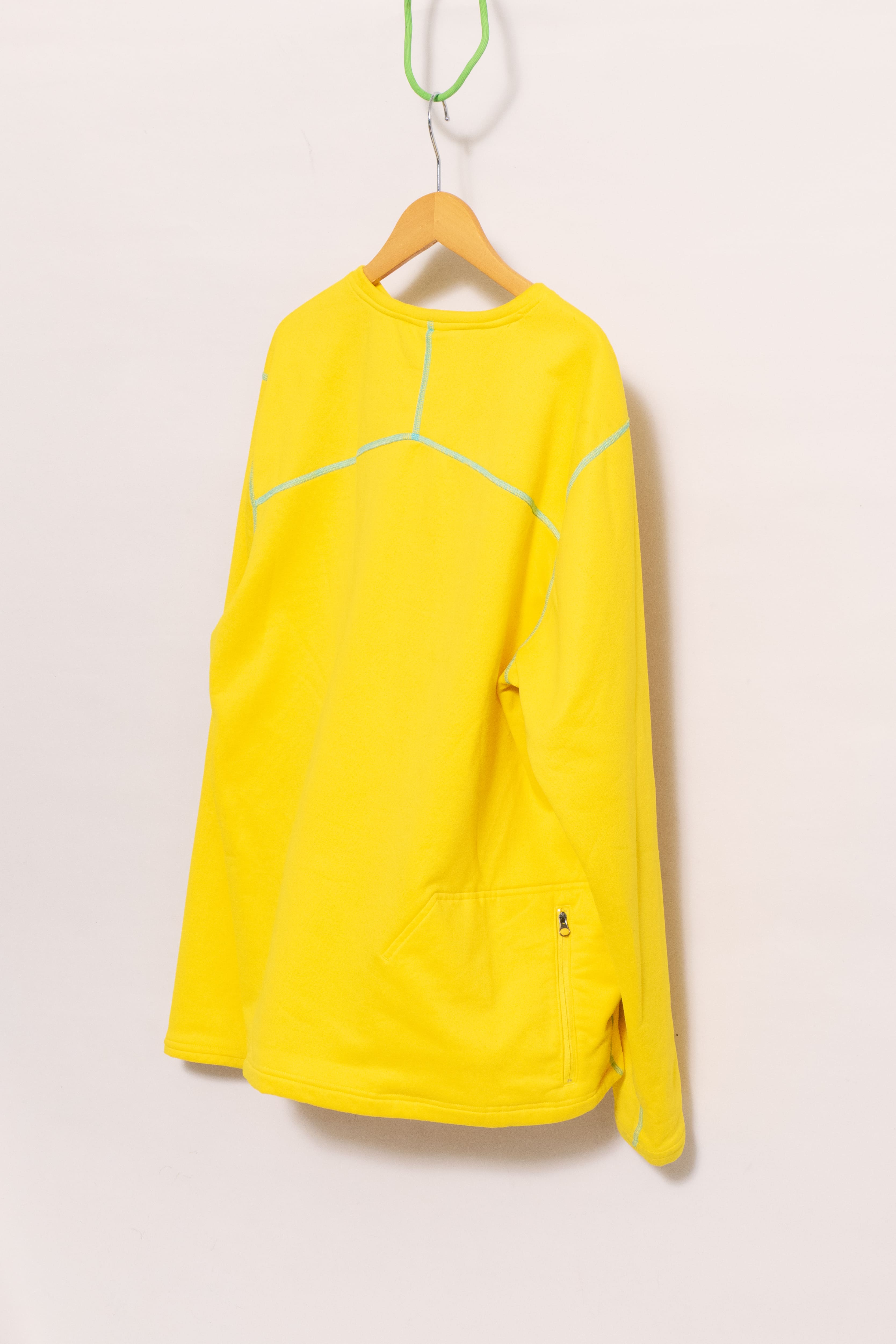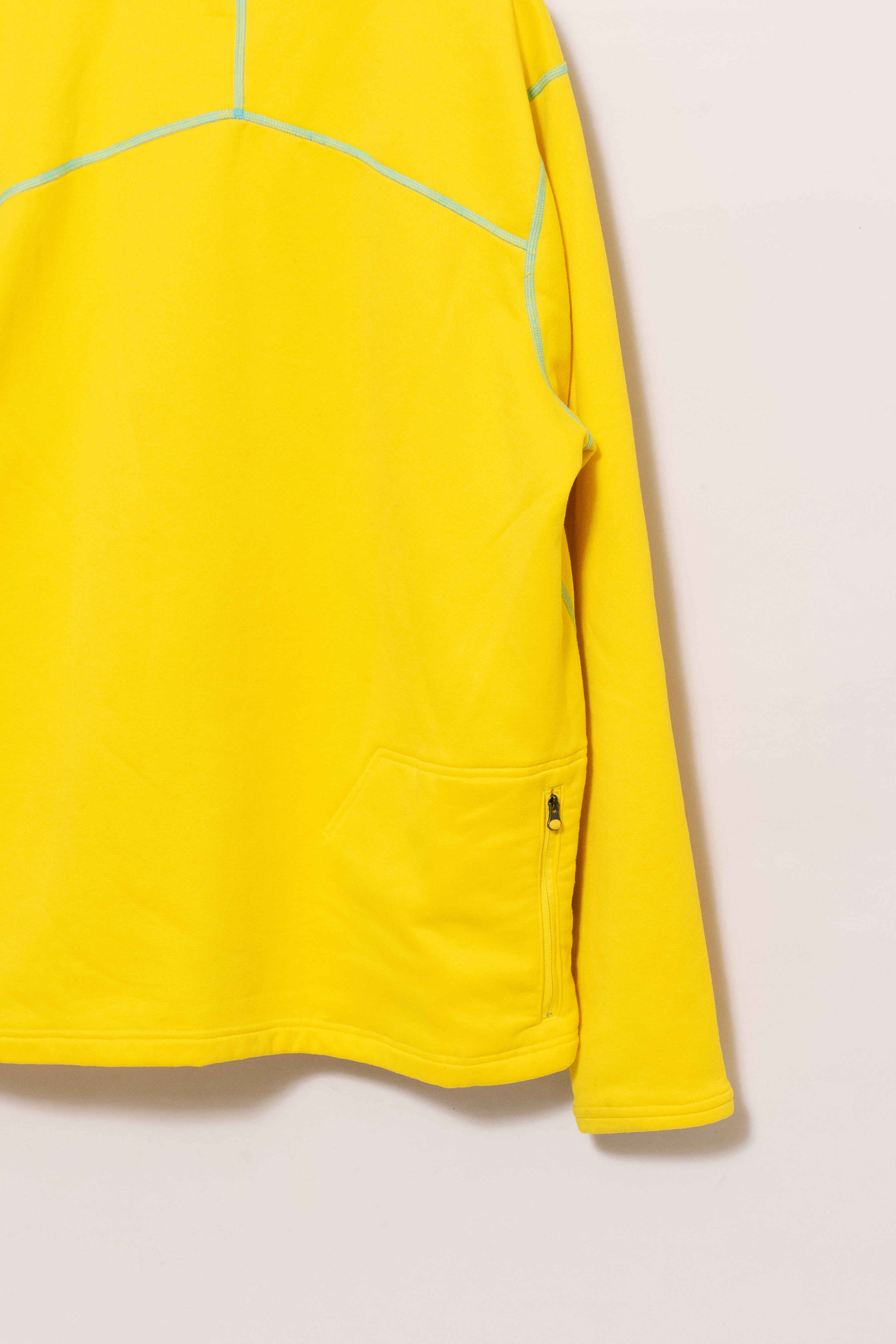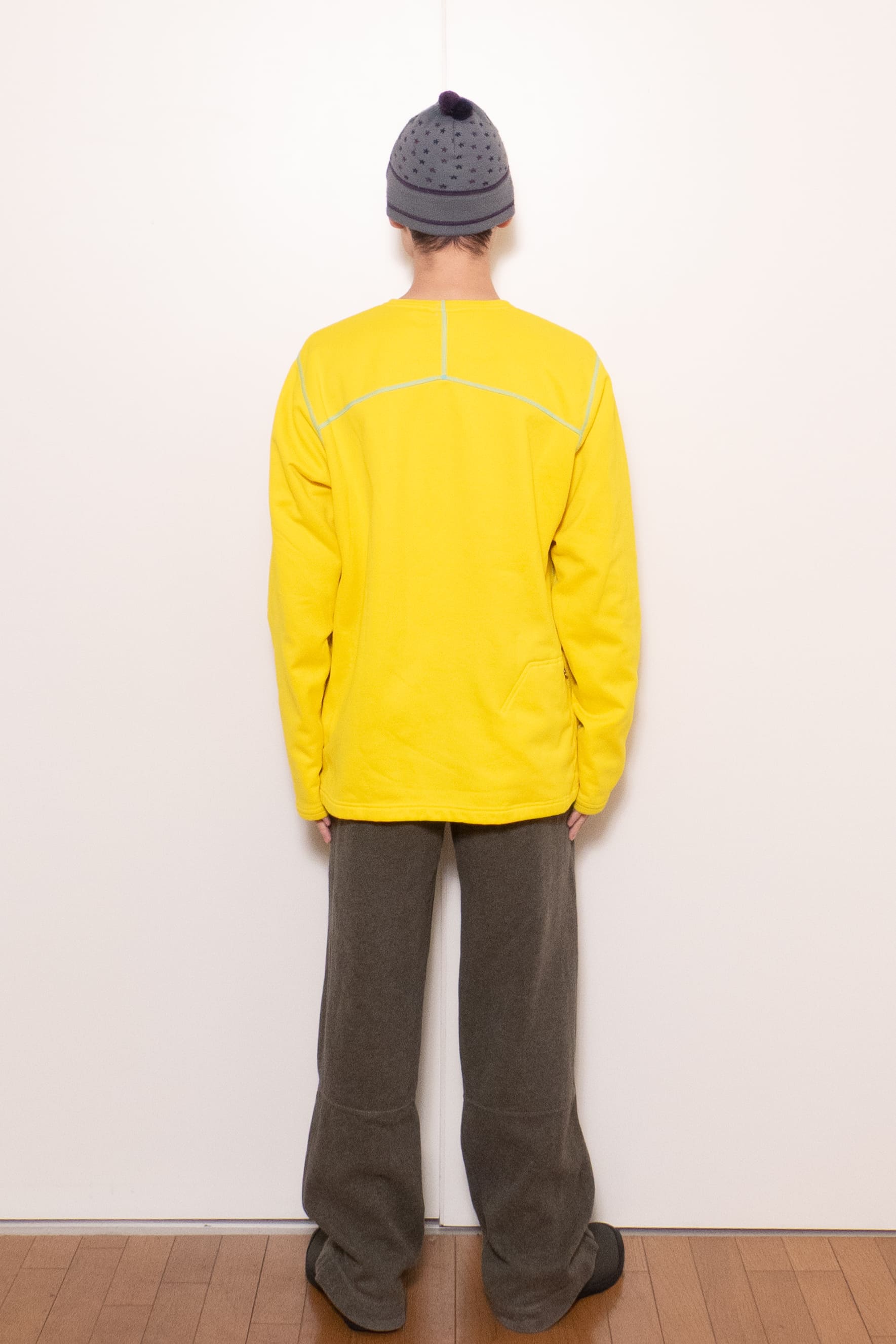 元気な発色の良い黄色に水色のステッチ。冬に着たい、発色の良くて暖かいインナーです。