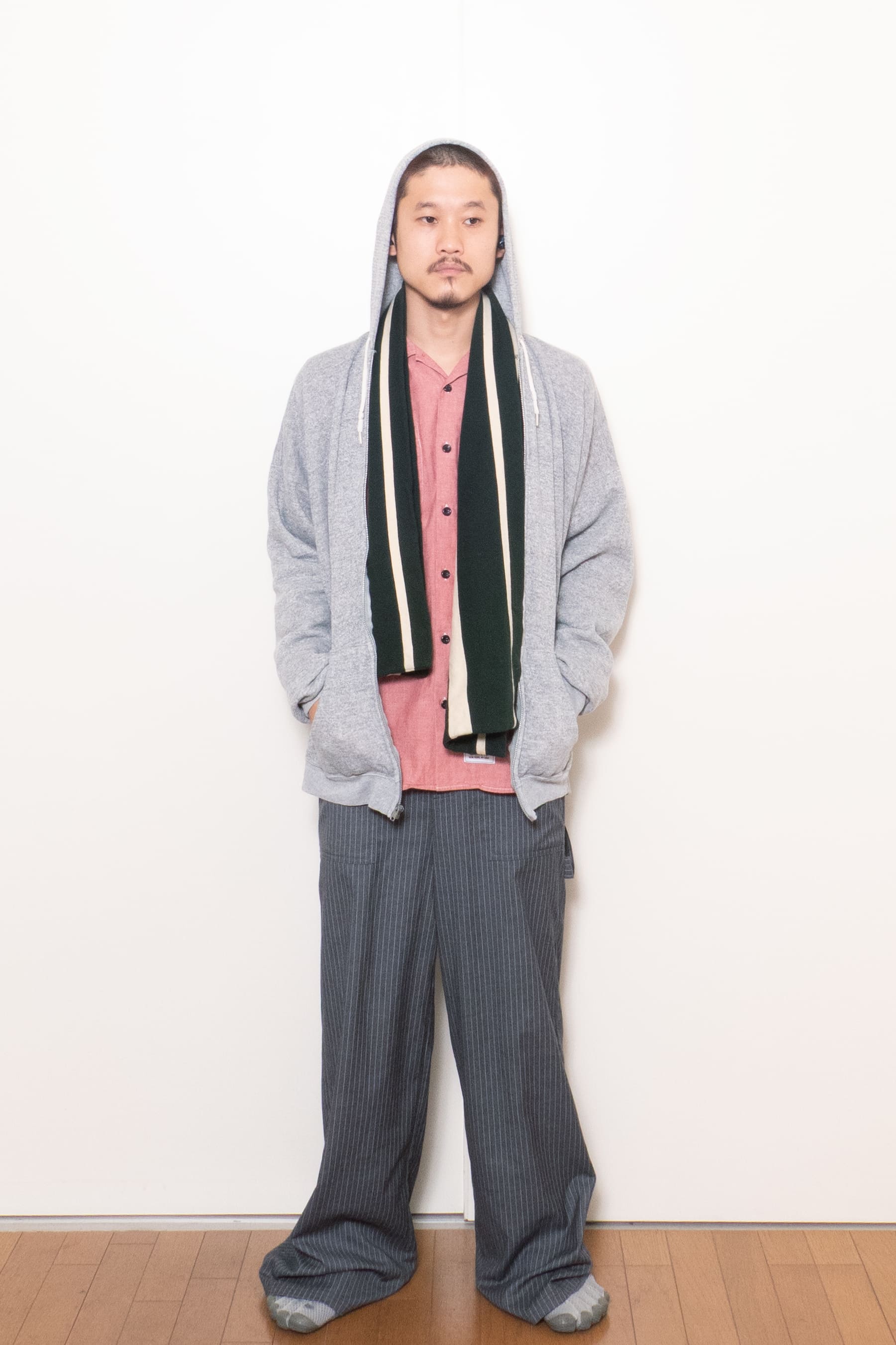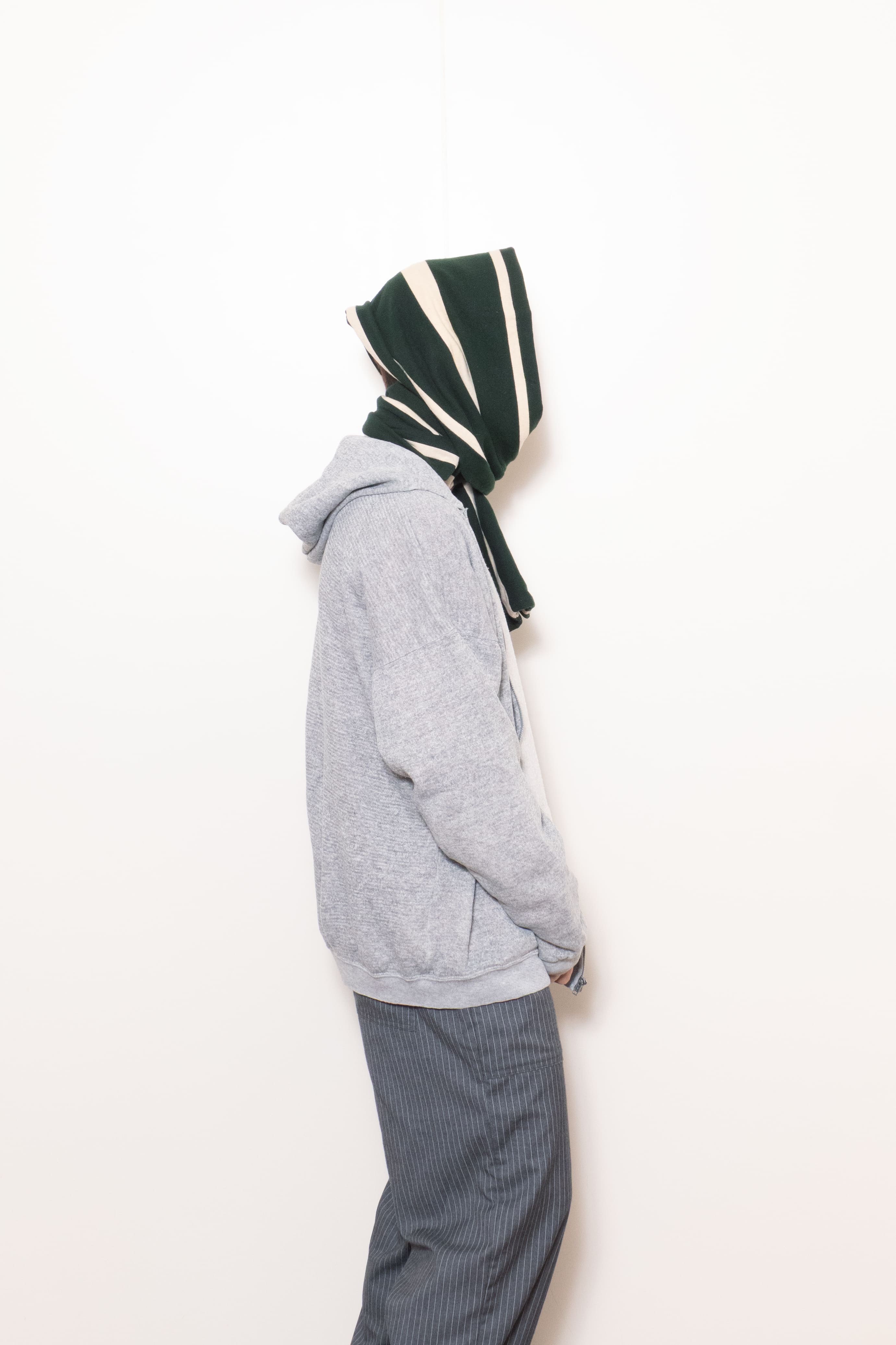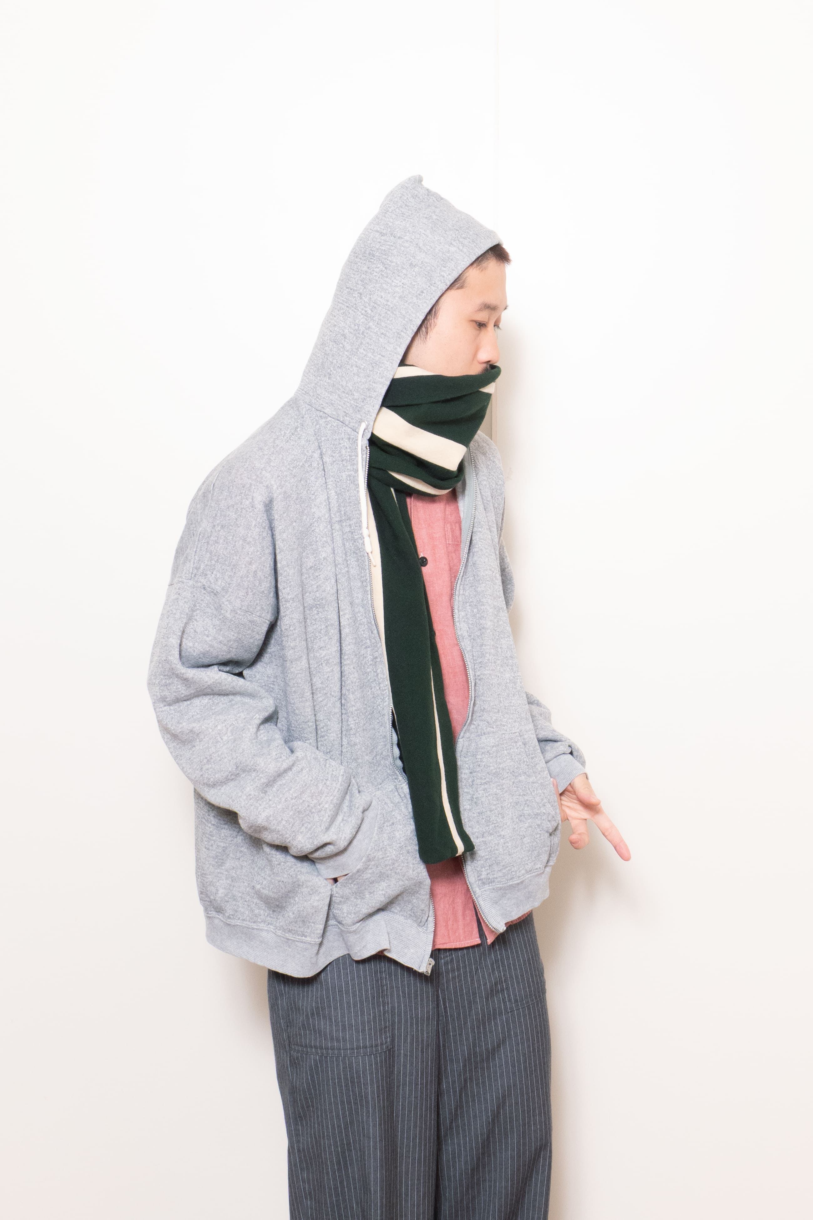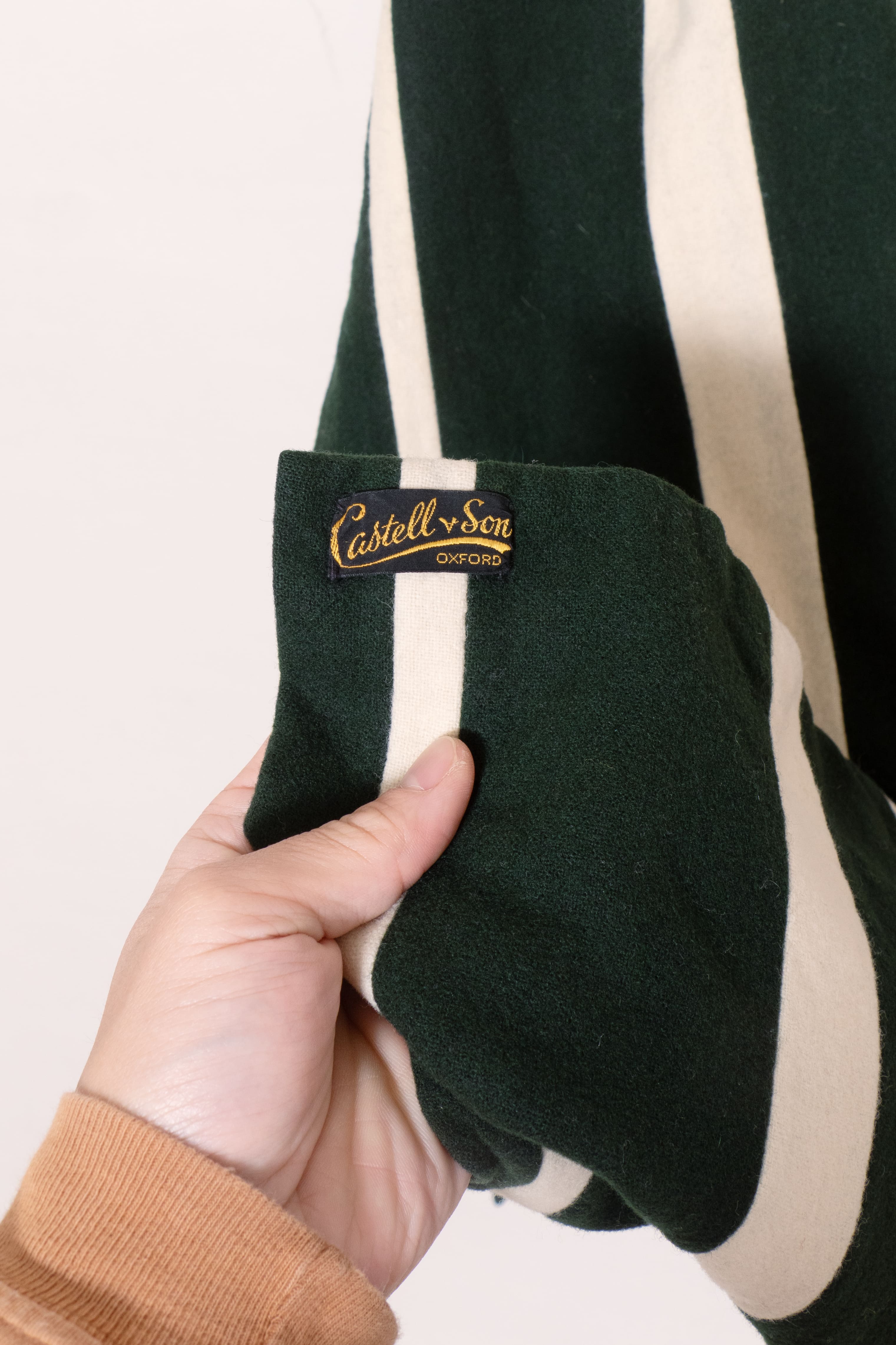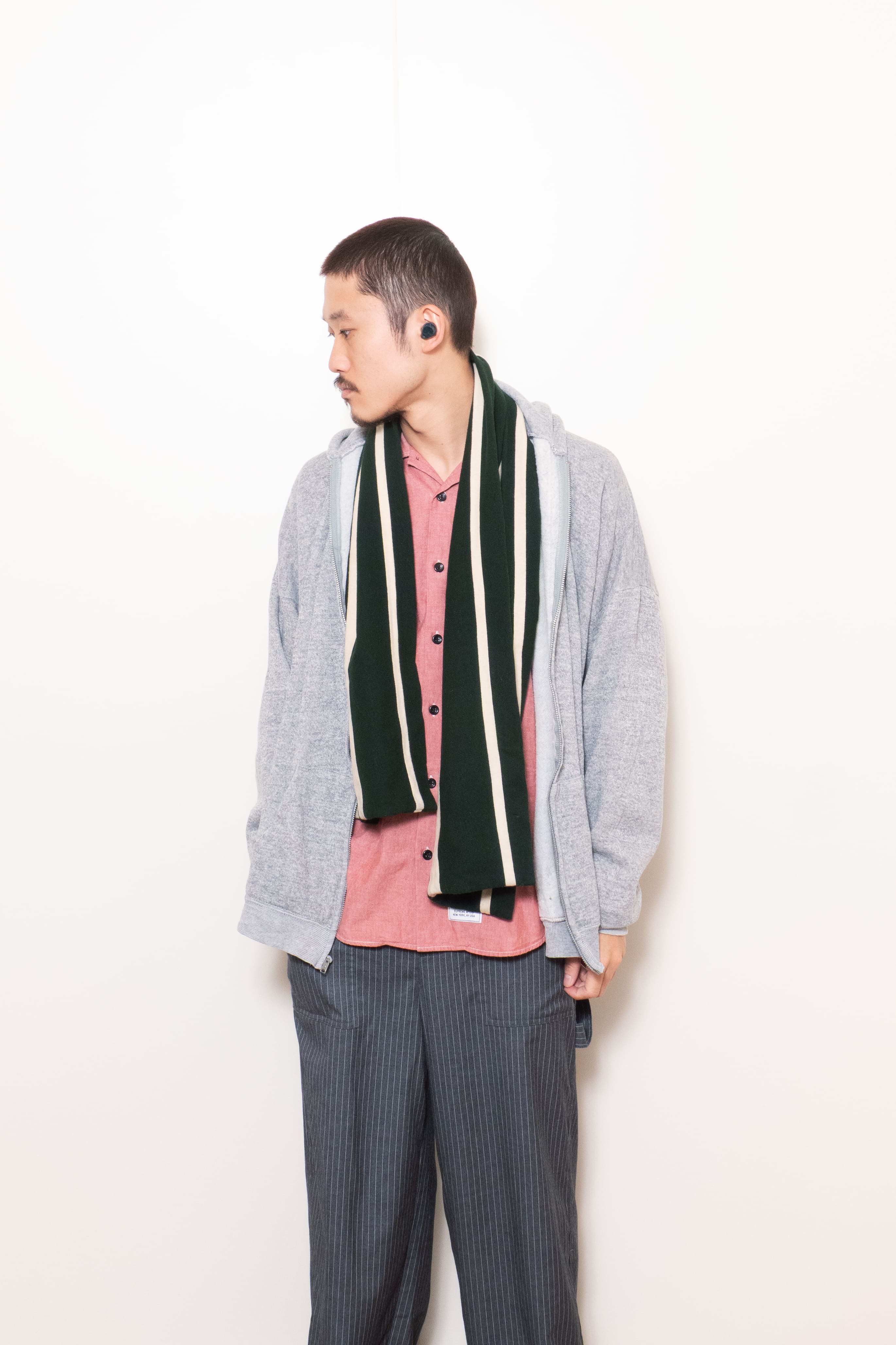 幅の違うストライプ柄。モスグリーン×ホワイトのクリーンな色味も最高です。
