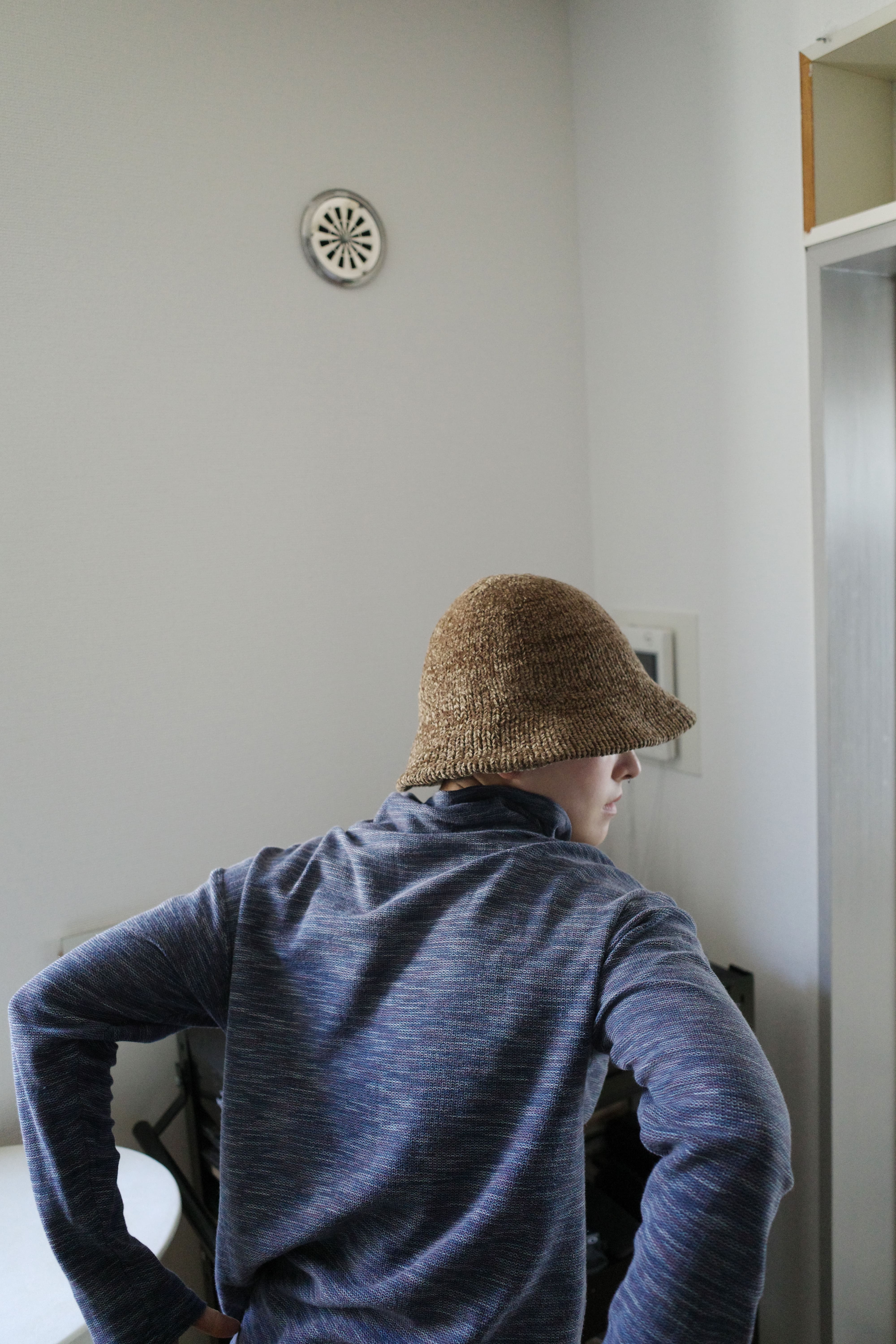 深く被れるタイプの良い形。頭から秋物取り入れていきたいですね