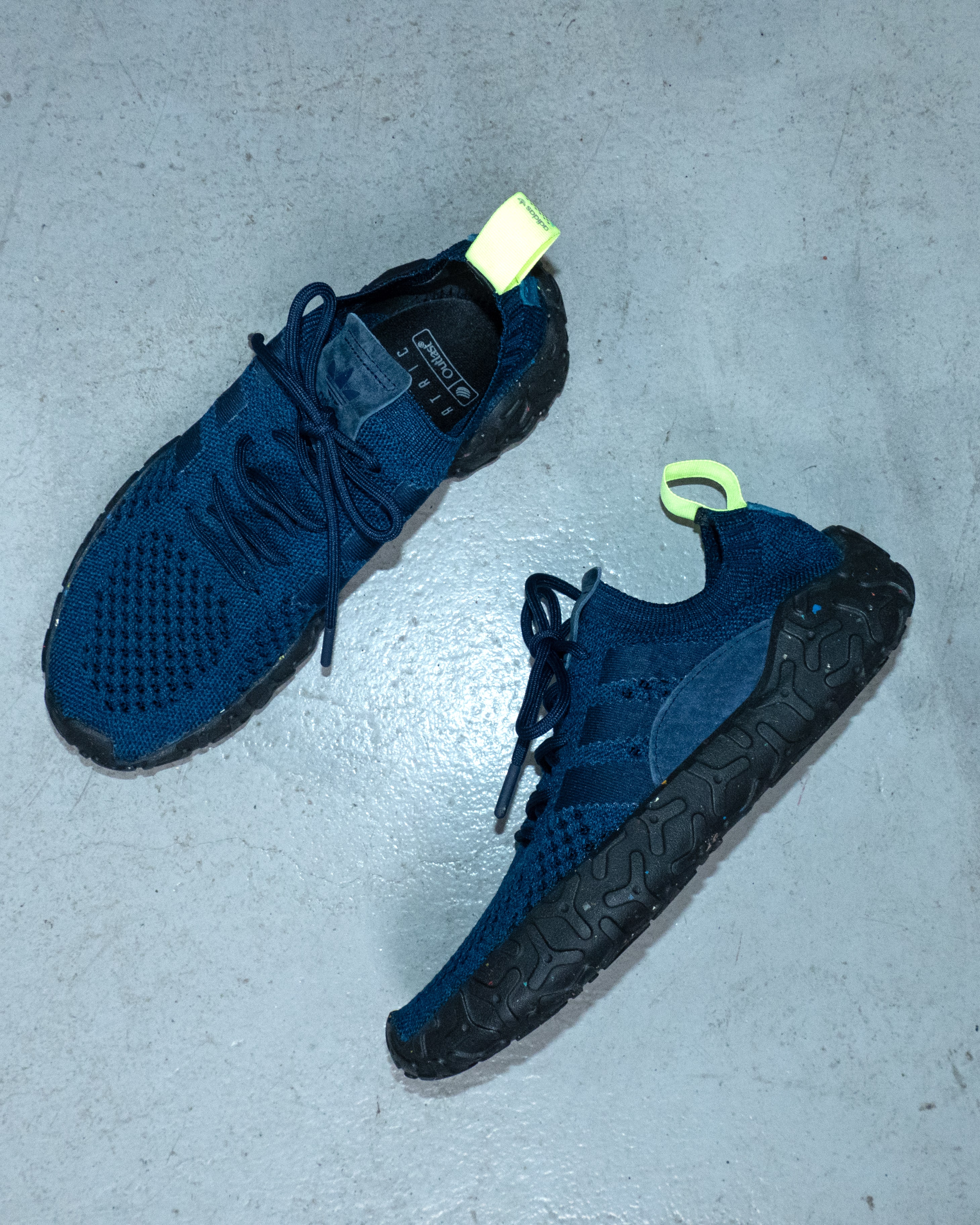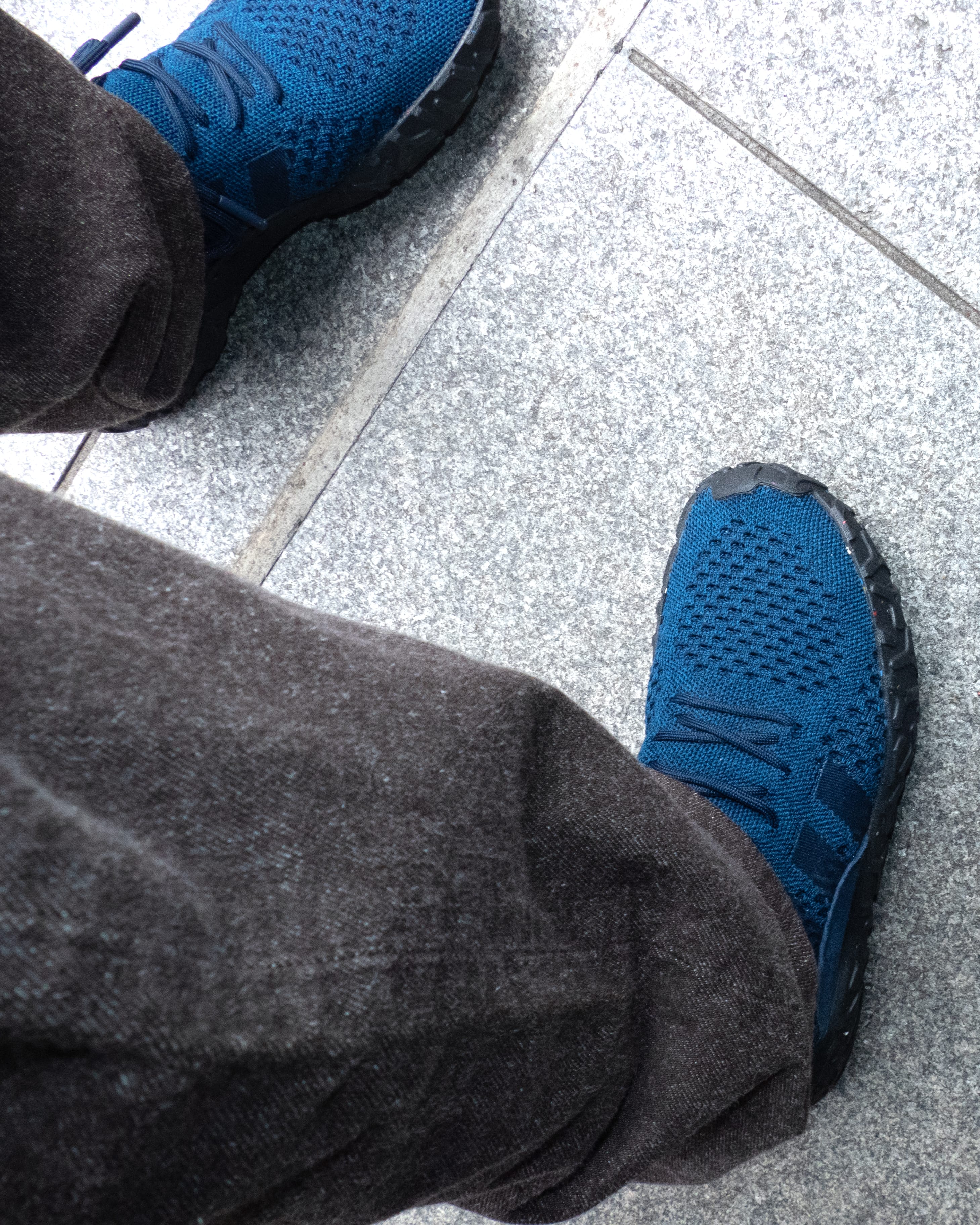 最近気分のニットソーシューズ。こちらは、ネイビーにソールがネップのようになっています。抜群に良い。ウールパンツやスラックスに合わせて履きたい。