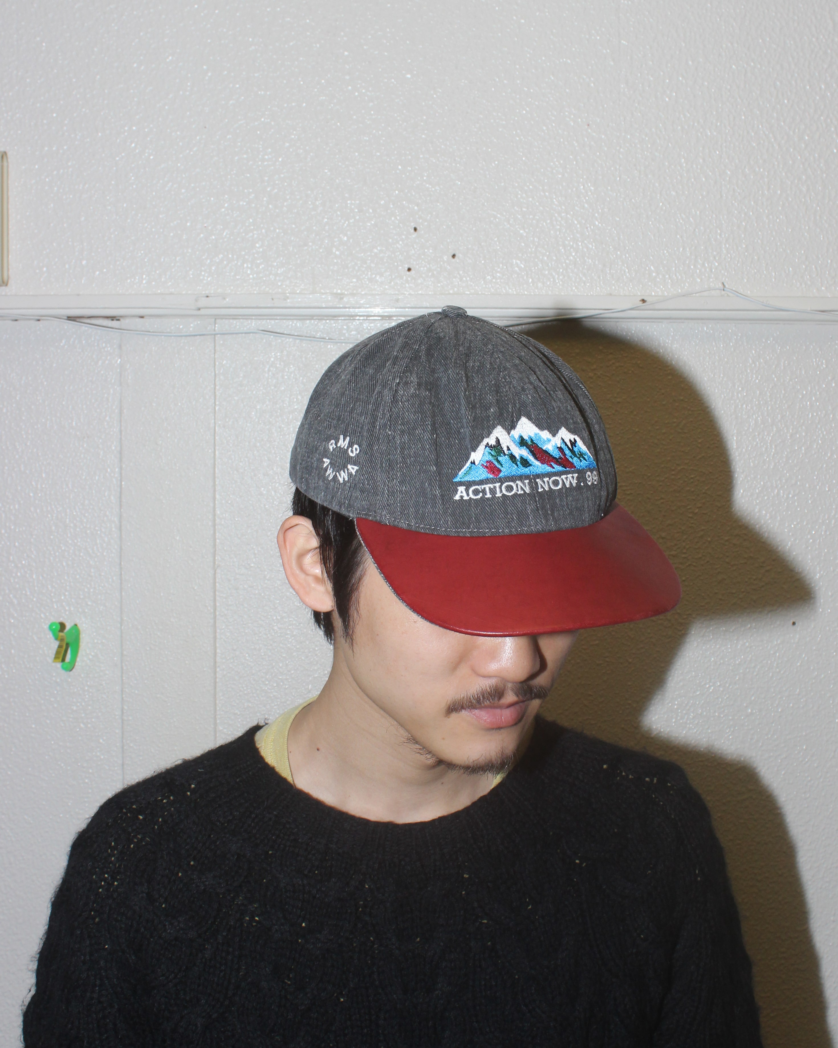 意外と見ないスミ黒コットン地とマルーンのレザー切替え。